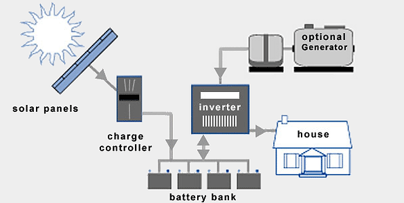 Typical off-grid solar systems require the following extra components: